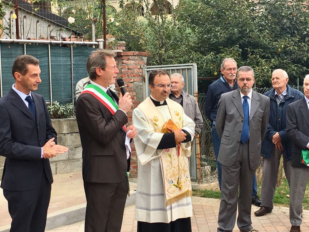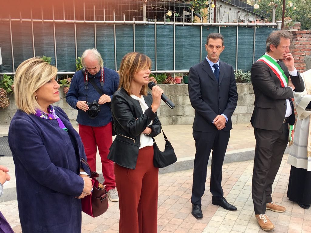 "Questa - ha sottolineato don Fabrizio prima della benedizione di rito - è la porta della Valle e del nostro paese ma dobbiamo augurare alla nostra comunità di essere una comunità dalle porte aperte, capace di accoglienza. Quest'area è stata intitolata alla violenza sulle donne, che rientra nella non accoglienza dell'altro: che sia donna, che sia straniero, che sia immigrato. Se non vuole essere solo un nome il fatto di essere porta, dobbiamo augurarci che il nostro non sia solo un luogo in cui si passa e si transita ma un paese in cui ci si senta accolti. E chiunque possa e debba sentirsi accolto. Nel tempo in cui si vorrebbero chiudere le porte e innalzare muri, noi vogliamo pensare ad una comunità in cui i muri non dividono e le porte sono aperte per tutti".
