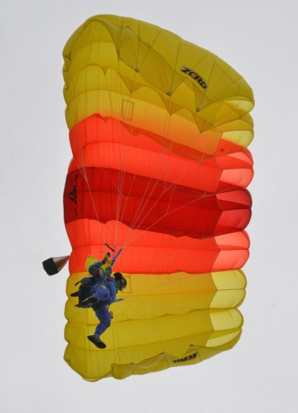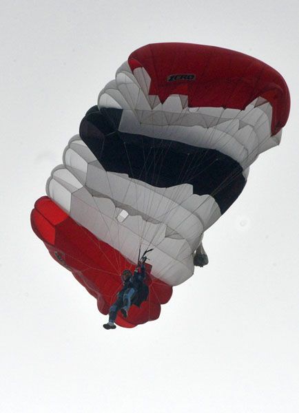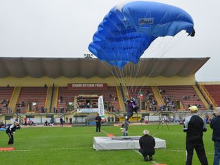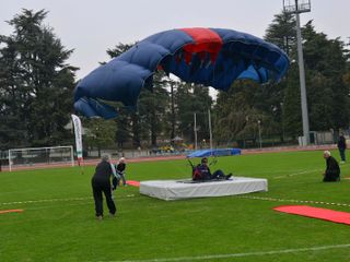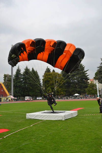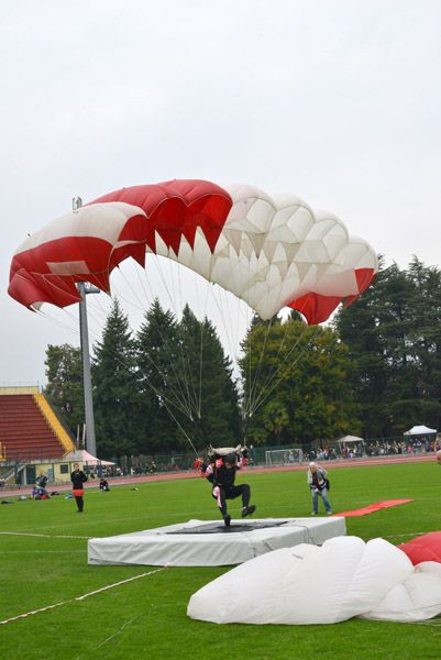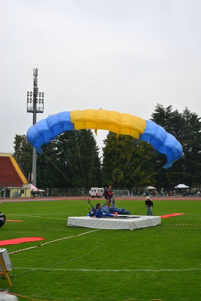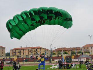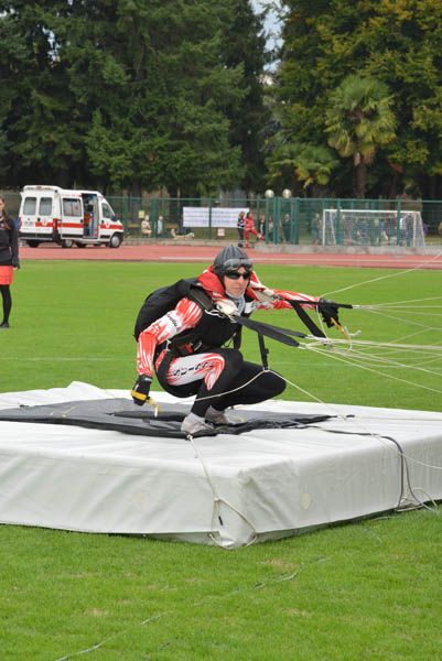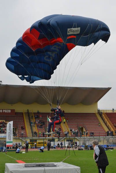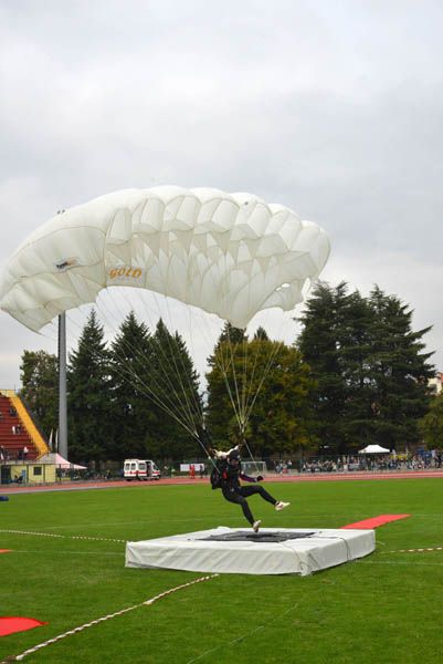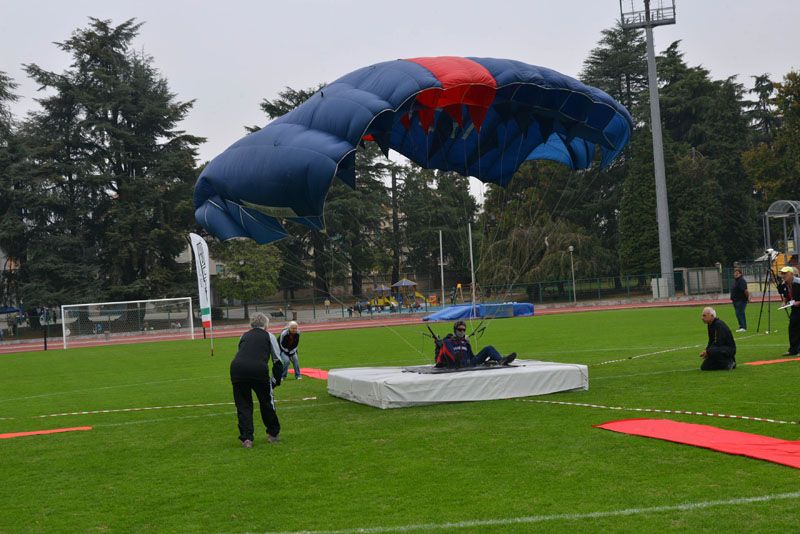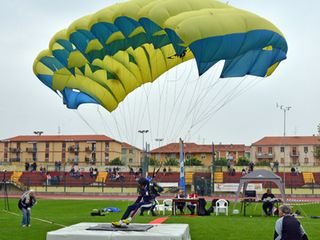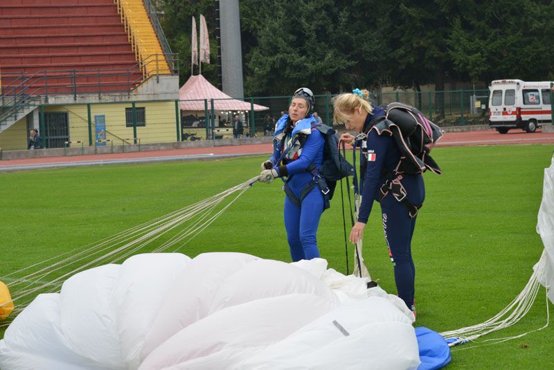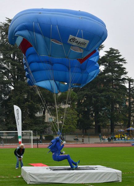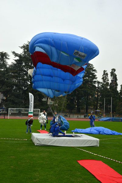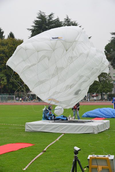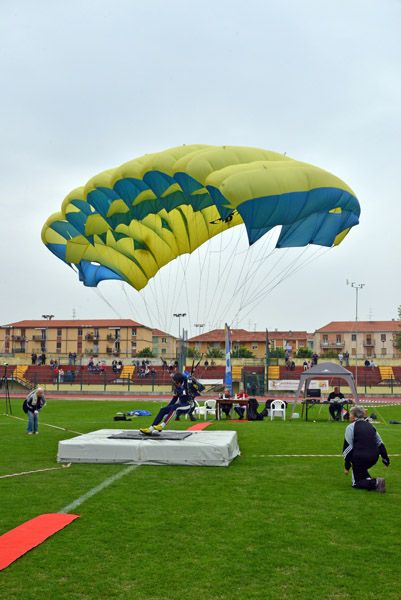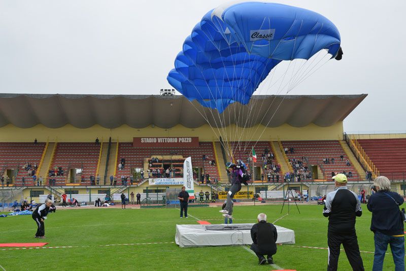 Circa 400 i lanci con le "vele" in due giorni con gli elicotteri in decollo e atterraggio dai campi sportivi di via Lombardia mentre i paracadutisti sono scesi sul manto erboso dello stadio "Pozzo-Lamarmora". In molti hanno assistito al campionato complice l'ingresso gratuito, la curiosità di assistere allo spettacolo di uomini e donne provenienti dal cielo. Le squadre erano composte da 5 atleti ciascuna: l'obiettivo era atterrare su un materasso posto al centro dello stadio del diametro di 5 metri con un bersaglio ben preciso da rispettare. I punteggi di atterraggio hanno premiato i più precisi, cioè i rappresentanti dell'Esercito.