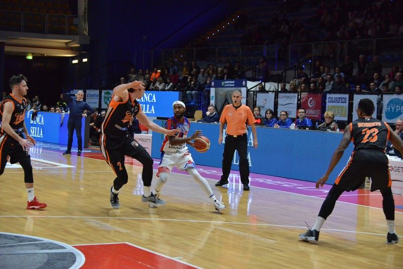 La cronaca. Apre Tessitori con 0/2 dalla lunetta, poi Baldassarre segna i primi 3. Sulla transizione due tiri sbagliati da Biella, poi fallo su Tex che torna in lunetta ma segna solo il secondo. Ancora Tessitori da sotto: 5-3. Bowers mette la tripla del 6-6 e sul ribaltamento Pacher va a schiacciare ma sbaglia e reclama un fallo che forse c'era. Ferguson fallisce la tripla e Fabi, dall'altra parte, sigla il +2 Viola. Ancora dalla lunetta, Conti fa 2/2. +4 per Reggio. Fuori Uglio, dentro Wheatle. Ospiti di nuovo ai liberi con Pacher che fa 2/2 (8-12). Wheatle ruba palla in difesa e spinge il contropiede. Fallo su Bowers che dalla lunetta non sbaglia: 10-12. Jazz da tre e Biella mette la testa avanti per un attimo, perché Pacher fa 13-14 e Pollone replica: 15-14. Ancora Ferguson da 3 e coach Calvani chiama time out sul 18-16 a -3’10” dalla prima sirena. Fabi risponde a Ferguson, 18-19. Anche Wheatle segna dalla lunghissima: 21-19. I rossoblù soffrono troppo a rimbalzo e Reggio va ancor in lunetta. Pollone da 3, 24-20. Segna anche Rattalino sfruttando al meglio un assist di Jazz Ferguson, 26-20. Fabi, sempre dalla lunetta, accorcia a 12”, ma sulla transizione Luca Pollone implacabile buca ancor la retina dalla lunghissima e quarto che si conclude con la squadra di coach Carrea avanti di 7 lunghezze: 29-22. Il secondo quarto si apre con l’errore da tre di Sgobba e con i primi due punti di Benvenuti per la Viola. Poi Bowers da 2, 31-24. Antisportivo a Sgobba dopo una palla persa sotto il tabellone di Reggio. Passera fa 2/2 e palla agli ospiti, ma Benvenuti sfonda su Uglietti. Tape-in di Wheatle. Ancora lui in entrata dà spettacolo e segna il 36-28. Benvenuti accorcia e Rossato infila la tripla su palla persa da Biella, 36-33. Poi Tessitori arpiona un rimbalzo in attacco e mette il 38-33. Azione da tre punti della Viola che mette un libero e segna sul rimbalzo offensivo il -2, 38-36. Terzo fallo di Albano Chiarastella (dubbio), ma gli ospiti non ne approfittano. Ci pensa ancora Wheatle a mettere il 40-36 tagliando la difesa avversaria come il burro. Mancano 130” all'intervallo lungo. Segna Caroti da sotto e viola di nuovo a -2 (40-38), poi Jezz fa 2/2 dalla lunetta e Bowrs segna e subisce fallo, ma sbaglia il libero supplementare. Bowers e Pollone sciupano un bel contropiede ma la rimessa è rossoblù. A poco più di un minuto dalla sirena Biella conduce 44-38 con palla in mano. Sbagliano sia Rattalino che Pacher, poi lo stesso Rattalino servito da Ferguson va a schiacciare sotto la Barlera. Le squadre tornano negli spogliatoi sul 46-38.