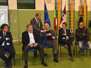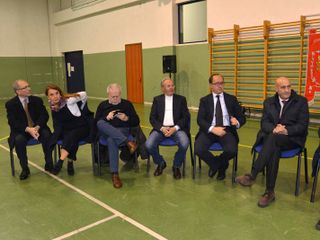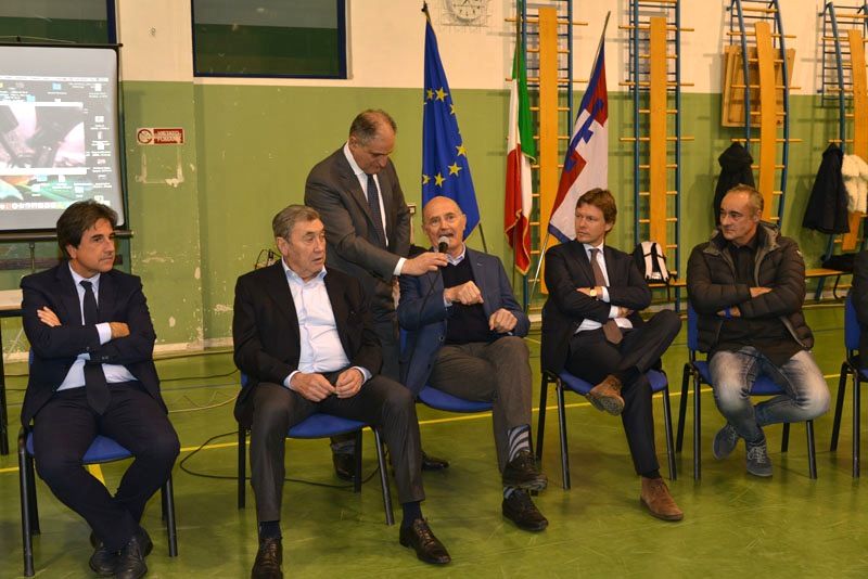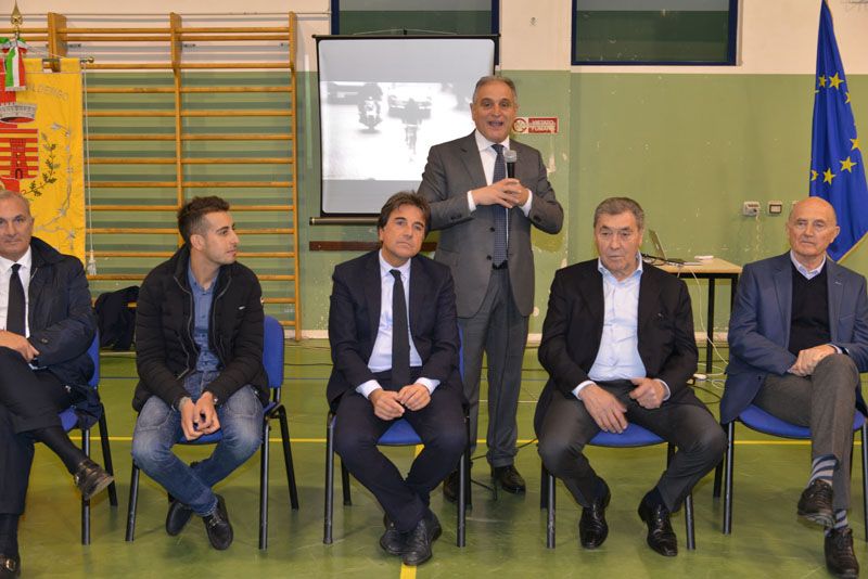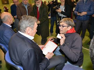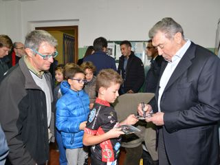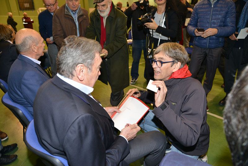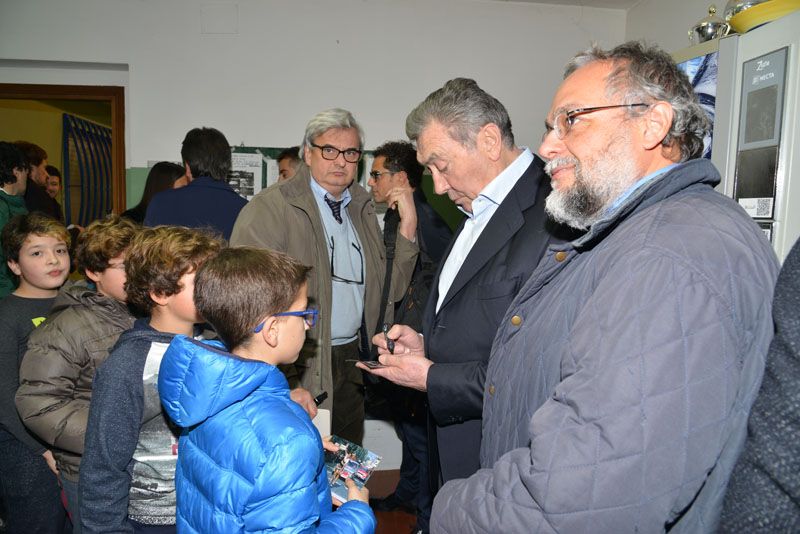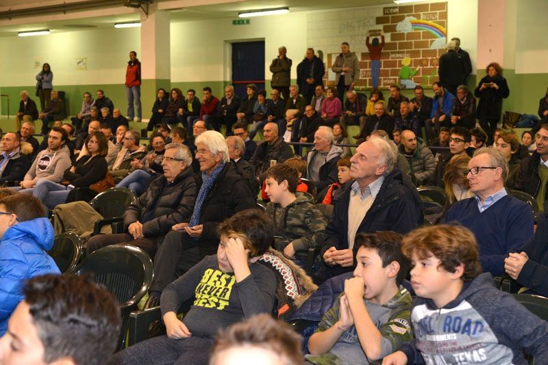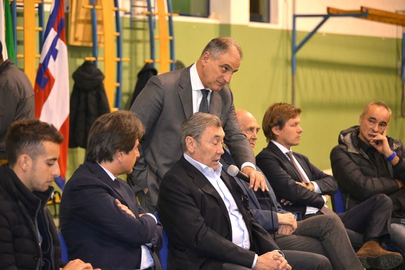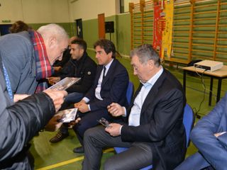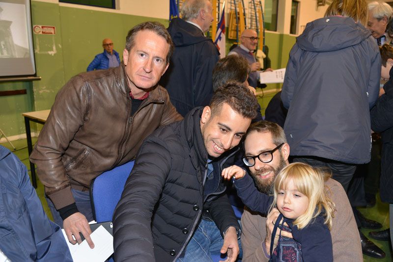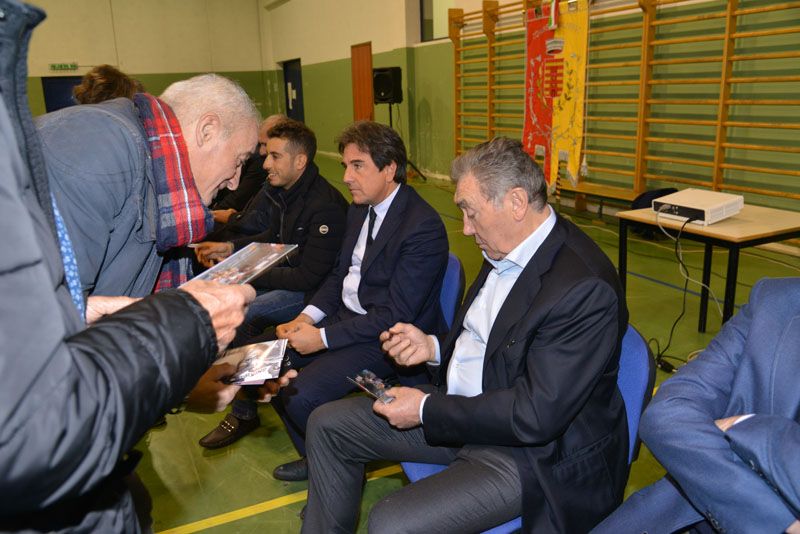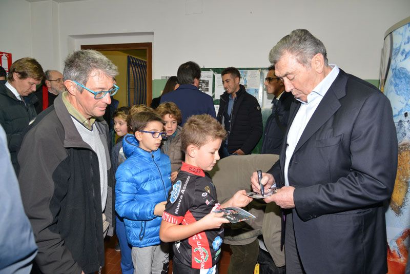 Dopo le premiazioni al Castello di Valdengo, l'amministrazione comunale guidata da Roberto Pella ha aperto le porte della palestra per l'incontro tra i cittadini e i grandi campioni del ciclismo ospiti ieri, 24 novembre, per il Galà delle due ruote. Eddy Merckx, Fabio Aru e Italo Zilioli hanno risposto alle domande del conduttore della serata, Marco Nosotti, e alle curiosità del pubblico. Tanti gli autografi e le foto a cui i re del pedale, del passato e del presente, non si sono sottratti per la gioia di chi ha vissuto le emozioni del "Cannibale", vincitore di oltre 500 corse da professionista, e chi tifa per il sardo campione d'Italia in carica, amico del paese da cui è partito per ottenere il suo primo successo al Giro (tappa del 2014 Valdengo-Montecampione).