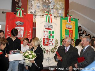 Chiara Comoglio, sindaco di Lessona, ha presentato in Comune durante una cerimonia alla presenza del Prefetto Dott.ssa Annunziata Gallo, sindaci, forze dell'ordine e ragazzi delle scuole, il nuovo gonfalone che riporta nello stemma un simbolo di Lessona ed uno di Crosa a testimoniarne la fusione.