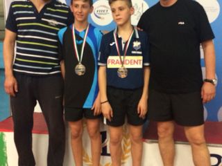 Nel primo turno vittoria in tre set contro i lombardi Pozzoni e Busnardo e poi subito opposti agli amici piemontesi Allegranza (che sarà compagno di doppio di Francesco nella gara del pomeriggio) in coppia con Giorgia Sulis. Lo scontro fratricida è molto combattuto, primo set a noi (8), secondo e terzo agli avversari (-11,-8), quarto set, in rimonta, nuovamente appannaggio di Fra e Araya (9) e poi, in bella tutto stranamente facile, si chiude l’incontro con il punteggio di 11 a 4 in nostro favore. Per accedere alla semifinale sulla strada ci sono i toscani Matteucci e Rensi. Sarà perché questi sono più forti, sarà perché i nostri sono appagati dalla bella prestazione precedente, fatto sta l’incontro si chiude, in tre set, a favore degli avversari. Nel doppio maschile, Francesco gioca con il cussino Giacomo Allegranza ed i due partono quali seconde teste di serie. Al primo turno ci sono i calabresi Amodeo e Chimenti: no problem. Poi è il turno dei toscani Brandini e Matteucci, anche questi battuti in tre set. In semi è un po’ più dura, per superare i veneti Mazza e Fantoni, i nostri eroi devono ricorrere al quinto set, poi vinto con facilità lasciando agli avversari solamente tre punti. Ad attenderli in finale ci gli amici Vallino e Giai, portacolori del TT. Torino, che non hanno ancora perso alcun set. L’incontro è molto sentito da tutti i giocatori in campo, forse troppo. Giocano molto contratti, la paura di perdere li condiziona. Nei primi due set i nostri partono avanti ma in entrambi vengono raggiunti e superati sul finale. La stessa cosa avviene al contrario nel terzo, avanti Giai e Vallino con Fra e Giacomo che recupero e vincono. Il set successivo ce lo aggiudichiamo con facilità (5) e si va alla bella. Tutto il set punto a punto, ma un paio di errori gratuiti alla fine, in un set equilibratissimo, fanno la differenza. Il titolo di Campioni Italiani di doppio Ragazzi se lo aggiudicano Federico Vallino Costassa e Andrea Giai. Per il biellese Francesco Gamba, comunque, una onorevolissima medaglia d’argento. Nella gara di singolo, tutto facile per Francesco nel girone iniziale, quattro agevoli vittorie contro, Baroni (Cortemaggiore), Graziani (Valdarno), Casaburi (Molise) e Balduin (Este).