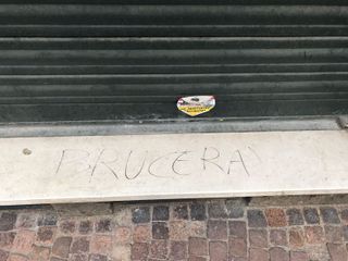 La notizia dell'apertura di una sede di Casapound, movimento politico di estrema destra, a Biella non è passata inosservata in città. Nei giorni scorsi, all'esterno dell'edificio di via De Marchi che ospiterà il partito a livello locale sono apparse due scritte, una disegnata sul gradino di accesso e l'altra scritta su un foglio di carta. Due messaggi di "avvertimento" che preoccupano anche i residenti della zona.