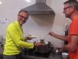Lasciata la chiesa entriamo in refettorio dove un'insalata prima e un tris di lenticchie cucinate benissimo, una mela e molto vino rosso locale rompono gli indugi. Alla fine, tutti i 35 pellegrini parlavano la stessa lingua: quella della sincera fratellanza. Poi, al mio "a celebration for the chef", sono partiti gli applausi e un brindisi per i cuochi. Le grappe dei monaci a fine cena hanno reso ancora più disinibita la serata, terminata poco dopo per le ferree regole per cui ci si ritira a dormire non tardissimo".