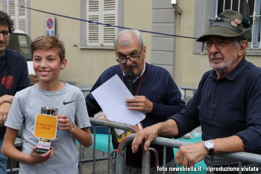 Tra il profumo di castagne e frittelle di mele, preparate dagli Alpini, sono stati premiati dal Cucu oltre ai primi assoluti, i primi arrivati delle scuole elementari, Tommaso Bonino e Sofia Oriana Botto, i primi arrivati delle scuole medie, Luca Barbotti e Carlotta Colombo, La Società sportiva più numerosa, il Lessona, il gruppo più numeroso, Elementari di Chiavazza, i più distanti, Famiglia Kerr dalla Scozia, la più giovane, Ginevra Marinone, il più anziano, Norberto Rovere e la più affezionata, Paola Plate.
