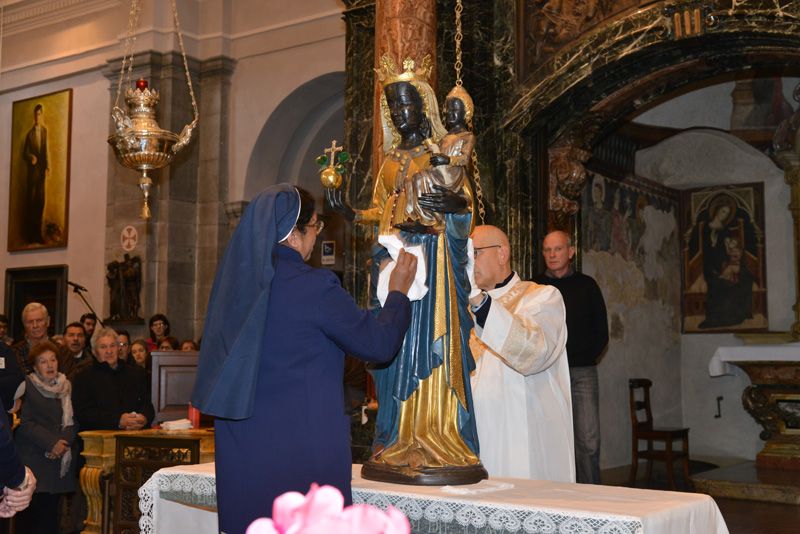 Il tradizionale rito di pulizia della Sacra Effigie ha richiamato un gran numero di fedeli alla Basilica antica del Santuario di Oropa. Molti, nel pomeriggio di sabato 17 novembre, hanno assistito ad uno degli appuntamenti religiosi più suggestivi del nostro territorio. Per l'occasione la statua della Madonna è stata portata all'esterno del sacello per consentire la pulizia con un panno di lino: anche questa volta su entrambi i volti della Madonna nera e del bambin Gesù, non si è posato alcun granello di polvere.