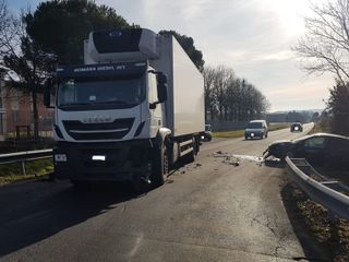 E' stato trasportato all'ospedale di Ponderano l'automobilista coinvolto nell'incidente successo, intorno alle 12 di questa mattina, sulla strada provinciale 400 nel comune di Sandigliano. Le condizioni dell'uomo non sarebbero gravi, illeso invece il guidatore del camion. Oltre all'ambulanza del 118 sono giunti anche i carabinieri che si occupano della dinamica e il personale della provincia di Biella per la pulizia della carreggiata.