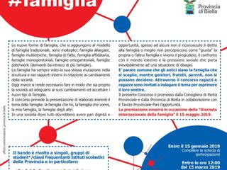 #famiglia è il bando di concorso promosso dalla Consigliera di Parità Provinciale e dalla Provincia di Biella, in collaborazione con il Tavolo Provinciale Pari Opportunità, rivolto a singoli, gruppi e classi di studenti frequentanti la scuola secondaria inferiore, la scuola secondaria superiore e le agenzie formative della provincia.