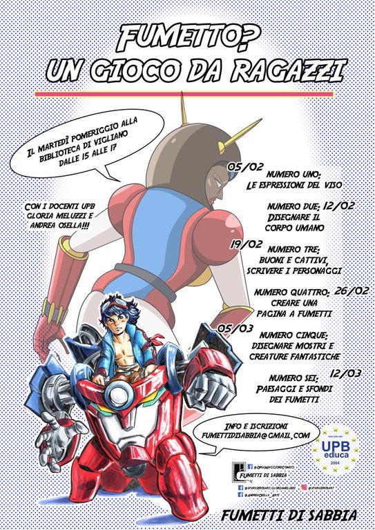 La necessaria pre-iscrizione si può effettuare lasciando nome e cognome dell’interessato alla Biblioteca di Vigliano, oppure direttamente al gruppo Fumetti di sabbia (mail: fumettidisabbia@gmail.com; Whatsapp: 3476831522).