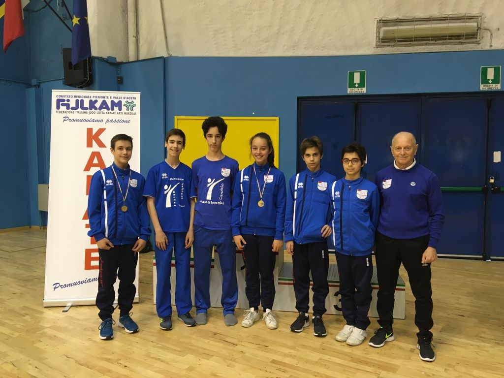 Grandi performances agonistiche anche per i giovanissimi Esordienti (12 – 13 anni) del team Funakoshi 1976 nel Trofeo regionale che la Fijlkam ha voluto dedicare ai debuttanti nei giorni precedenti la Pasqua. Nella cornice del Palazzetto Le Cupole di Torino si sono alternati sui tatami le varie categorie di peso delle classi femminili e maschili e in entrambe i colori Funakoshi 1976 sono saliti sul podio. E’ oro Adele Diana nei 53 kg. femminili e bronzo Davide Nuccio nei 45 maschili. Buone prove nei 40 kg. anche per Brian Roma e Carlo Gozzi che hanno concluso con il 5° posto.