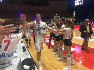 E niente. Chi se lo aspettava di arrivare ai playoff? E di essere 2-1 in gara 3? E di avere nelle proprie mani il match ball per passare il turno? Questa è Edilnol Biella, il saper stupire, soffrire, combattere. Fino all'ultima palla. Biella vince anche gara 3 73-67 e si porta avanti 2-1 nella serie contro Udine, la favorita Udine. E un piccolo dettaglio lo tralasciamo per ultimo perchè è importantissimo: ben cinque giocatori in doppia cifra. Questo è giocare di squadra. Edilnol soffre la prepotenza sotto canestro di Udine ma grazie al forza del cuore inverte un risultato che prende una piega pericolosissima durante il secondo quarto. La gabbia difensiva ospite imbriglia il gioco di Biella e il tiro da tre mortifero per Udine scavano il solco nel tabellone durante il secondo quarto. Punto fermo dei rossoblù e la calma. Nessun affanno nonostante il punteggio vada ben oltre i 10 punti di gap. Dopo il the caldo Biella sale in cattedra. Mortifera al tiro, aggressiva in difesa trainata da un ruggente Chiarastella. A 2' dalla fine del terzo quarto i rossoblù impattano sul risultato 51-51. Esplode il Forum. E' bolgia vera. Sims infila i due punti del sorpasso. Udine soffre e si appiglia a un Nicolic strepitoso. E re Carl Wheatle la mette dalla lunga. Il match vive la sua massima bellezza proprio in questi 10'. Ultimo quarto da cardiopalma. KT infila una triplona che ha il sapore tutto particolare. Mancano 4' alla sirena finale, Biella mastica punti, Nicolic e Udine scivolano sul pantano rossoblù. Non riesce coach Martelossi a estrarre dal cilindro una magia. Pinton da tre per il -4 Udine ma è solo l'ultimo sussulto della serata. Edilnol porta a casa il 2-1 e ora ha il match ball, sabato sera, nelle sue mani. All'HypeForum finisce tra il tripudio 73-67 e i rossoblù aspettano ora sabato sera. Sempre a Biella. Una partita che potrebbe regalare un sogno inaspettato.