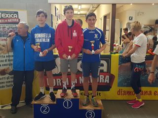 Negli Esordienti Maschi buona la prova di Giacomo Frassati che chiude all’8° posto a soli 30” dal podio, peccato per una grave indecisione nella prima transizione che gli ha compromesso un risultato migliore. Nelle Ragazze Femminile si è assistito come al solito ad un duello tutto bianco azzurro, dall’acqua sono uscite ben quattro IronGirls una dietro l’altra, prima Costanza Antoniotti a circa 9 secondi Marta Angelino, seguita da Arianna Chiorboli e Carlotta Freguglia, dietro il trenino IronBiella tutte le atlete delle altre squadre. Nel ciclismo Costanza Antoniotti seguita a circa 200 m di distanza da Marta Angelino hanno fatto praticamente gara a se incrementando gradualmente il loro vantaggio, seguite da una tenacissima Arianna Chiorboli. Nella run finale Costanza con un ritmo impressionante ha incrementato ulteriormente il vantaggio acquisito nelle due precedenti frazioni, chiudendo con un meritatissimo oro, con l’ottimo tempo di 15’ e 8”, seguita sul podio dalla compagna di squadra Marta che ha chiuso in 15’ e 47”. Quinto posto per Arianna Chiorboli , ed un ottimo 8° posto per Carlotta Freguglia , sempre più a suo agio nelle dure fatiche della triplice. Anche nella categoria Ragazzi Maschile Pietro Gardini ha raggiunto l’argento grazie ad una gara condotta, soprattutto nella bike, con un estremo acume tattico. Il giovane atleta si è risparmiato nella seconda frazione per poi affondare la sua stoccata finale nell’ultimo giro della run che gli ha consentito di salire sul 2° gradino del podio per un meritatissimo argento.