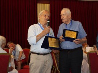 Durante la pausa pranzo tenutasi all’Agorà Palace Hotel, il Presidente di AMSAP, Claudio Milan con il direttivo del Club, ha voluto premiare con delle targhe di riconoscimento i soci fondatori: Lorenzo, Pedrale, Roberto Miniggio e Vittorio Serventi. Poi targhe di riconoscimento agli ex presidenti: Remigio Cibin, Lorenzo Pedrale e Guido Gili. Altro riconoscimento ad Aldo Brovarone, designer di auto e della locandina dell’evento, premio ritirato dal nipote, Cesare Brovarone e presidente scuderia G.Bracco di cui Paolo Zegna è presidente onorario. Il presidente Claudio Milan ha ricordato con commozione Silvio Ubertino suo predecessore e figura molto conosciuta nel biellese. In questa importante giornata è stato inoltre ufficializzato il gemellaggio con Le Retraumobile Club de Haute Savoie, e per l’occasione i due Club si sono scambiati dei premi in ricordo dell’incontro avvenuto.