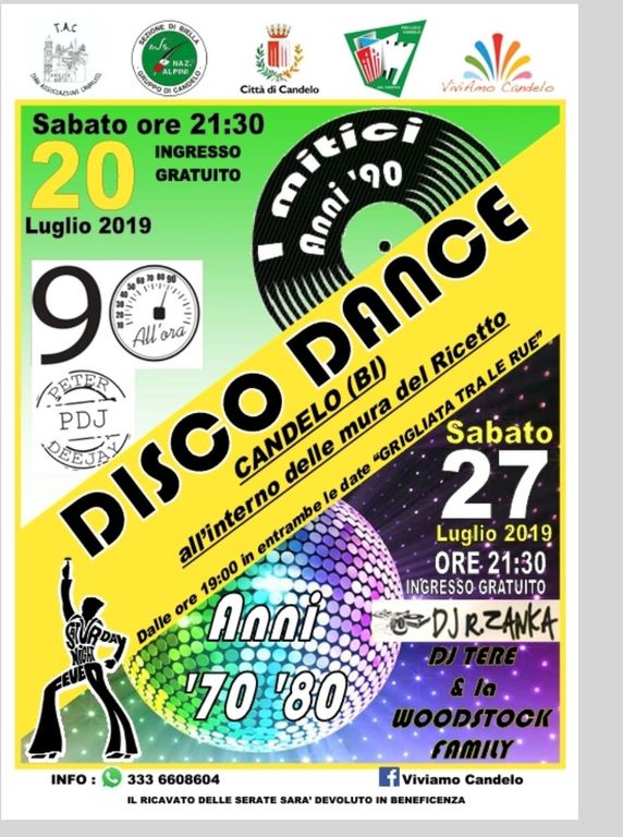 Ritorna Saturday Night, la festa estiva di Viviamo Candelo, evento nato nel 2017 come una scommessa ben riuscita ora giunta alla terza edizione. L'evento è patrocinato dal comune di Candelo e organizzato in stretta collaborazione con pro loco Candelo, TAC-Team Associazioni Candelesi e Gruppo Alpini di Candelo.