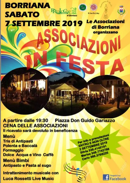 “Associazioni in Festa” è l’evento che chiude gli appuntamenti dell’estate borrianese. La festa, in programma sabato 7 settembre in Piazza don Guido Gariazzo (area interna al Comune) a partire dalle 19:30, vede unite tutte le associazioni del paese nell’obiettivo di offrire una serata di buon cibo e buona musica.