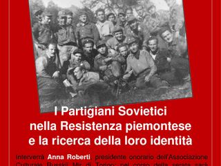 All'incontro parteciperà la dottoressa Anna Roberti, presidente onorario di Russkij Mir, la quale illustrerà il ruolo dei partigiani sovietici nella Resistenza piemontese e le varie fasi della ricerca della loro identità, dal dopoguerra ai giorni nostri.