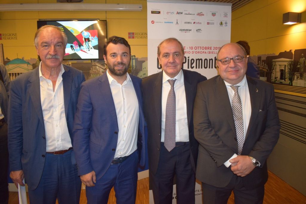 Alla conferenza stampa presente anche il sindaco di Biella Claudio Corradino accompagnato dal suo vice Giacomo Moscarola e dall'assessore Silvio Tosi: «Nel 2010 ho avuto la fortuna di ospitare a Cossato la partenza della Gran Piemonte e per 10 anni ho custodito nel mio ufficio di sindaco la bandiera della partenza. Ora arrivo a Biella e avrò la fortuna di ospitare il traguardo di Oropa, sembra un segno del destino. Il ciclismo è uno tra i migliori veicoli per la promozione del territorio, perciò ringraziano la Regione e Rcs per aver ancora una volta pensato a Biella e a Oropa».