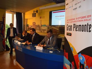 Alla conferenza stampa presente anche il sindaco di Biella Claudio Corradino accompagnato dal suo vice Giacomo Moscarola e dall'assessore Silvio Tosi: «Nel 2010 ho avuto la fortuna di ospitare a Cossato la partenza della Gran Piemonte e per 10 anni ho custodito nel mio ufficio di sindaco la bandiera della partenza. Ora arrivo a Biella e avrò la fortuna di ospitare il traguardo di Oropa, sembra un segno del destino. Il ciclismo è uno tra i migliori veicoli per la promozione del territorio, perciò ringraziano la Regione e Rcs per aver ancora una volta pensato a Biella e a Oropa».