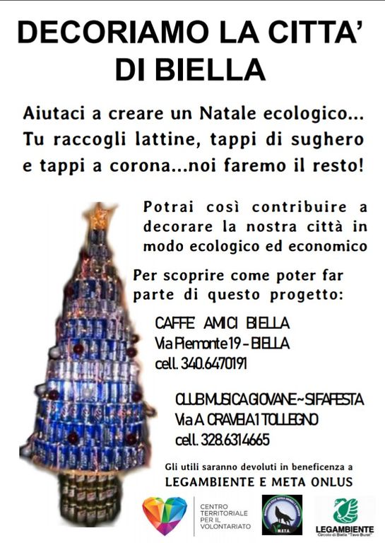 “Il primo intento è quello di portare un esempio ai più piccoli di come l’arte e il riciclo possano dare un importante contributo all'ambiente e rendere il Natale una festa più sentita e umile. Si spera di sviluppare un senso di collaborazione tra le varie attività della provincia di Biella, per cercare di dare un contributo significativo alla salvaguardia dell'ambiente, sempre più a rischio – spiegano -Pensiamo che Biella, oltre a città creativa, possa diventare anche un esempio di città ecologica, ma per farlo è necessario il contributo di più persone possibili: non ci rivolgiamo solo alle grandi aziende, simbolo della nostra città nel mondo, ma anche a gestori di attività di ristorazione, associazioni, scuole , case di riposo e a chiunque abbia voglia di aiutarci a raccogliere i materiali da poter riutilizzare e a creare le decorazioni che andranno ad abbellire il Natale dei quartieri periferici”.