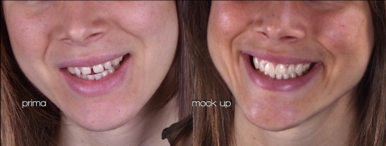 Sostanzialmente oggi ogni paziente ha la possibilità di rivolgersi al Dentista Estetico come si rivolgerebbe alla miglior sartoria; infatti esiste la possibilità di poter osservare il design più adatto al tipo personalizzato di dentatura, provandone il modello durante le fasi di confezionamento direttamente in bocca, potendo testare l’estetica, la funzione, la fonetica attraverso la più sincera percezione. In odontoiatria estetica viene detto anche “mascherina diagnostica” , ma“mock-up” è il termine ormai corrente con cui si indica questo procedimento che segue la previsualizzazione digitale (Aesthetic Digital Smile Design – ADSD ) relativa alle variazioni di forma e posizione dei denti e quindi del sorriso per rendere predicibile un risultato ottimale e accettato dal paziente; ovvero un’anteprima da valutare ed eventualmente modificare, per la realizzazione definitiva della nuova composizione dentale estetica.