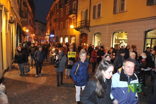Oltre 300 persone hanno partecipato ieri pomeriggio, sabato 25 gennaio, alla fiaccolata ‘Biella non dimentica’ per ricordare il Giorno della memoria. Ben 33 organizzazioni hanno promosso e organizzato l’evento che è partito alle 17,30 dalla Fons Vitae per concludersi a Villa Schneider. Il percorso si è sviluppato su quattro tappe nel centro cittadino. In ognuna di esse sono state lette poesie, racconti e testimonianze riconducibili alla Shoah, pronunciate dalla Senatrice Liliana Segre, da Primo Levi, da Etty Hillesum e da Elisa Springer, anch'essa sopravvissuta ad Auschwitz. Inoltre in via Amendola è stato ricordato Angelo Cena, vittima innocente della rappresaglia nazifascista e a cui è dedicata una lapide.