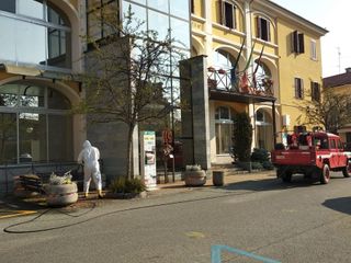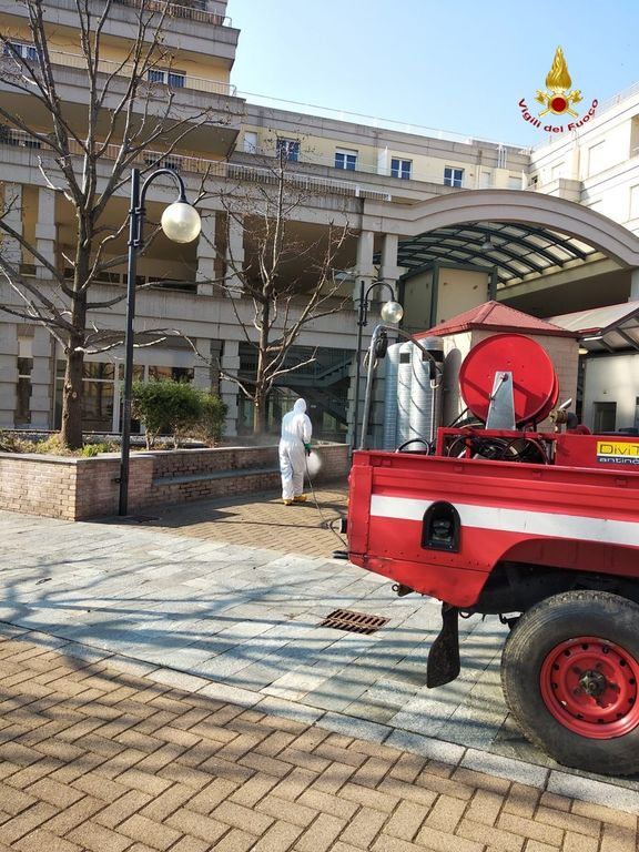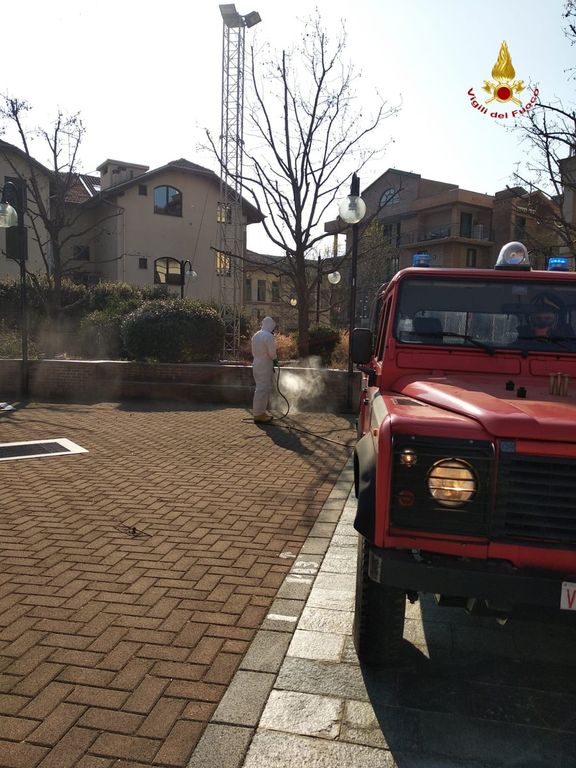 Sanificazione delle aree più a rischio e consegna delle mascherine a 6.800 famiglie ordinate dall'amministrazione Moggio a una ditta biellese e distribuite dalla Protezione Civile e da volontari. A Cossato stamattina è iniziata la sanificazione mirata a luoghi specifici, i più a rischio contagio. Stiamo parlando dell'area mercatale, davanti al municipio, in piazza della chiesa e in tutte le zone maggiormente frequentate oltre alle panchine dislocate nella città. "Ringrazio i volontari dei Vigili del Fuoco distaccamento di Cossato -commenta il sindaco Enrico Moggio- per la preziosa collaborazione. Questo lavoro verrà sicuramente ripetuto in futuro ma nella speranza che questa emergenza termini il prima possibile". Queste le zone della città sanificate dai Vigili del Fuoco di Cossato: Mercato coperto, piazza Angiono, via don Bertola, piazza Chiesa, piazza Perotti, via Repubblica, stazione, piazza Tempia, fontana via Milano, piazza Pace, via Mercato, via Trento.