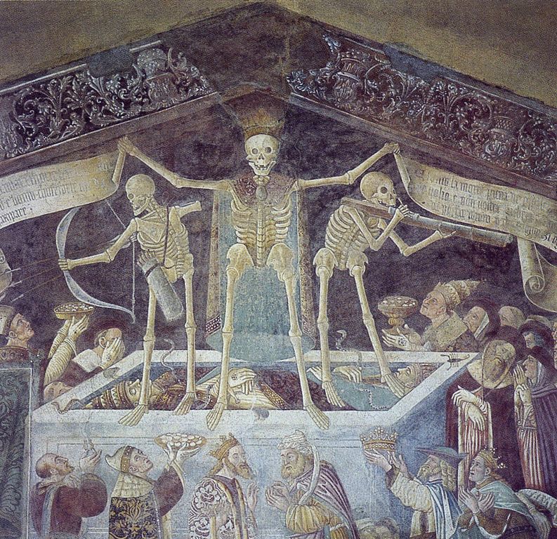 Perché si sia perduta questa singolare pittura ammonitrice dove ricchi e poveri, potenti e disgraziati, uomini di fede e peccatori, giovani ed anziani, uomini e donne ballavano tutti assieme nell’Aldilà assieme a scheletri ghignanti non é dato sapere.