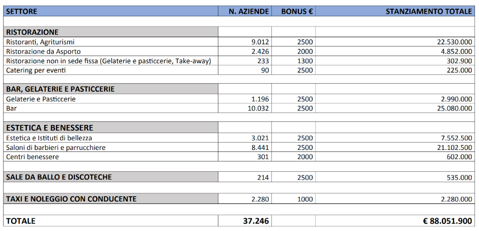 Apprendiamo inoltre con rammarico che la Regione Piemonte ha previsto delle forme di aiuto a fondo perduto. Non c'è niente per le nostre agenzie di viaggio, non sapremo quando inizieremo nuovamente a fatturare! Siamo nello sconforto più totale! Richiediamo un BONUS a fondo perduto come è stato concesso per altre categorie di seguito elencate: