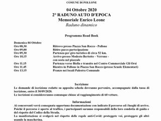 Il 2° Memoriale Enrico Leone si svolgerà domenica 4 ottobre, una giornata di connubio tra motori e natura al Parco Burcina, dove le auto sfileranno dal cancello del Gallinit sino al cancello d'ingresso su piazza San Rocco. "Questa giornata - continua Delsignore - è la partecipazione di una comunità che vanta una tradizione storica di motori su due e quattro ruote, e che coglie l'occasione per mostrare la bellezza dei suoi territori, unendo le strade al cielo con le mongolfiere protagoniste per i dieci anni di Pollone dal Cielo. Vi aspettiamo numerosi!".