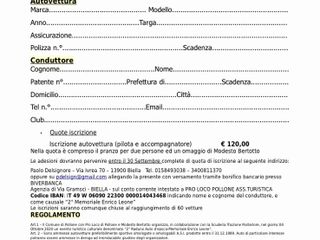 Le domande di iscrizione al raduno devono essere presentate entro il 30 settembre: le iscrizioni si considereranno chiuse al raggiungimento di 60 vetture.