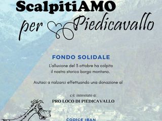 “Quest'anno ha deciso di metterci proprio alla prova ma non è nostra abitudine stare con le mani in mano – spiegano dalla Pro Loco di Piedicavallo - Questa volta però abbiamo bisogno ancora di più del vostro aiuto per ripartire e ricostruire insieme quello che l'alluvione ci ha portato via. ScalpitiAMO tutti insieme per Piedicavallo”. In locandina i riferimenti per le donazioni.