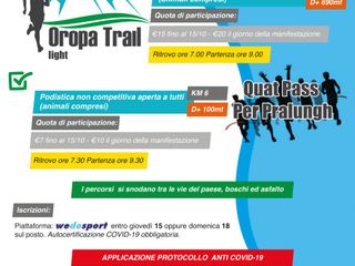Per informazioni: www.oropatrail.it – 333 2813069 (Oropa Trail Light) – 348 4964229 (Quat Pass Par Pralungh)