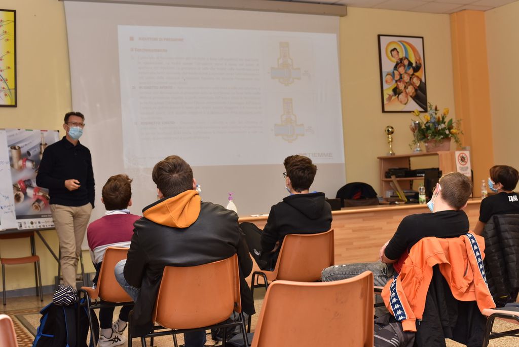 Tiemme Raccorderie vanta una decennale esperienza nella produzione di materiali che vanno dalla raccorderia al valvolame fino ai componenti per le centrali termiche ed impianti solari, passando per la gestione climatica degli edifici. Gli allievi delle tre annualità del settore termoidraulico hanno potuto fruire del tempo messo a disposizione da parte di due responsabili della Tiemme. I ragazzi, seguiti dai formatori Simone Contro, Fabio Coppo e Corrado Viana hanno partecipato con interesse all'iniziativa. Particolarmente apprezzata è stata la preparazione e la disponibilità di Alberto Consoli e Roberto Sigurtà che hanno fornito informazioni importanti di settore legate dapprima agli impianti idrosanitari e successivamente, alla gestione climatica di impianti ed edifici.