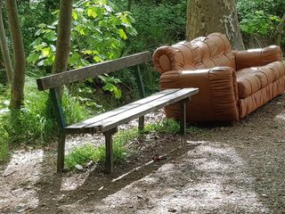 Nelle scorse ore, è spuntata una nuova “panchina” nei giardini Atleti Olimpici e Azzurri d'Italia di Chiavazza: un divano di grosse dimensioni nel bel mezzo dell'area verde del rione.