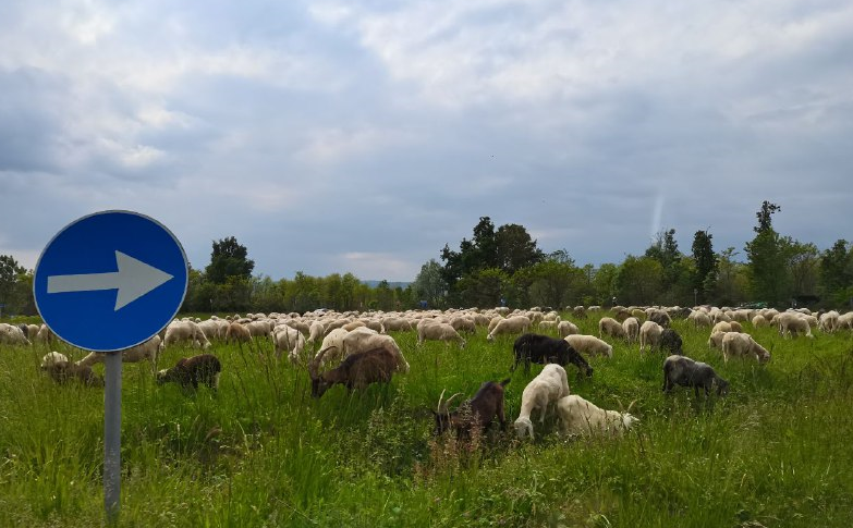 Scena curiosa nel primo pomeriggio di ieri, 9 maggio. Un gregge di pecore ha tranquillamente pascolato all'interno della rotonda provinciale che immette per i paesi di Mongrando, Borriana e Cerrione.