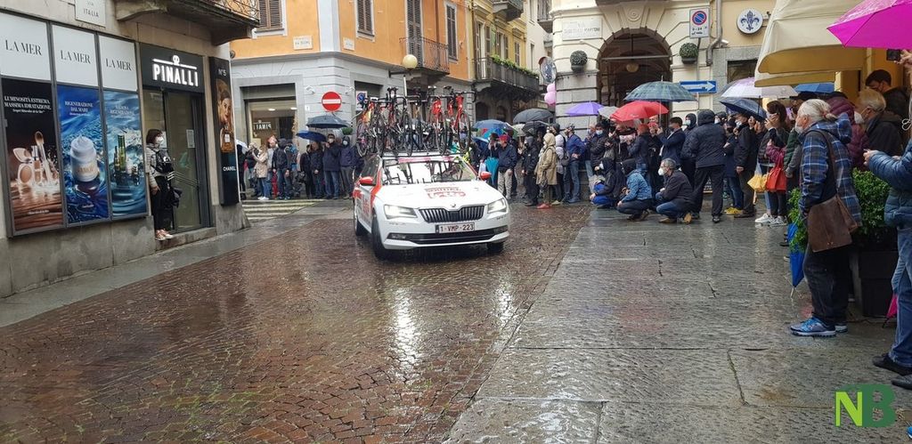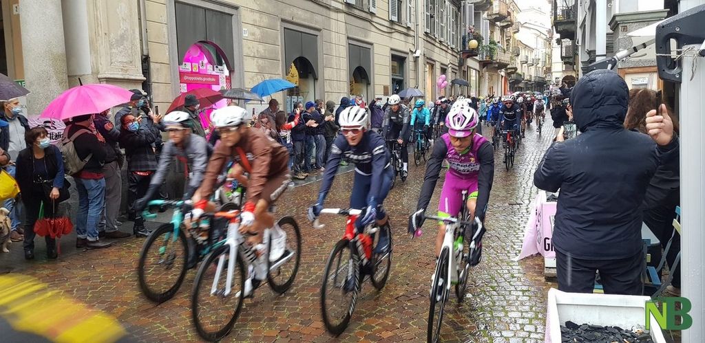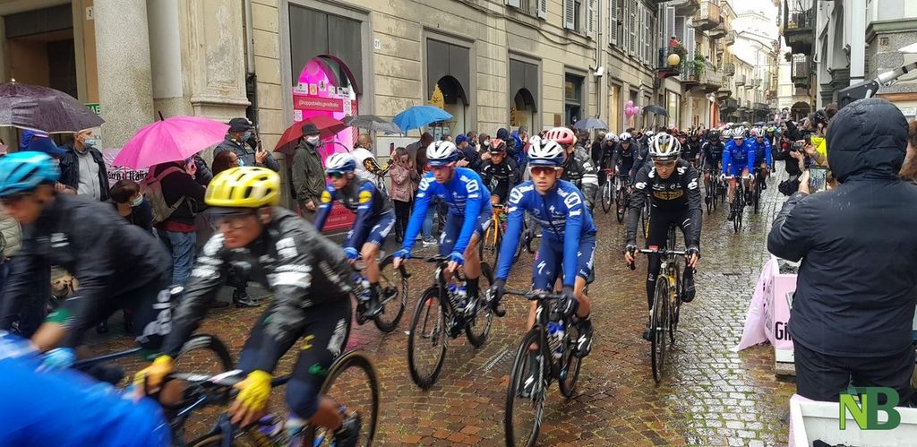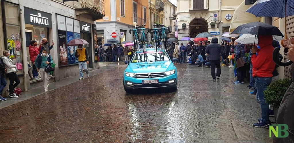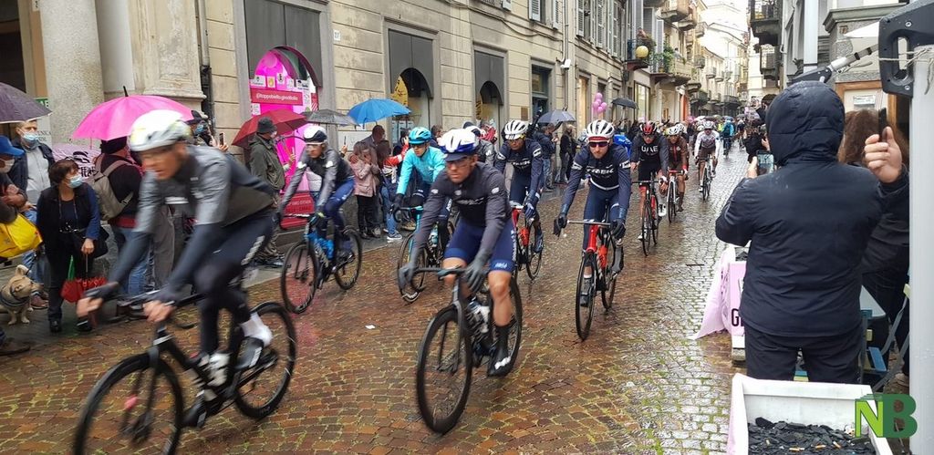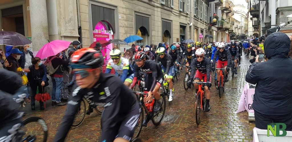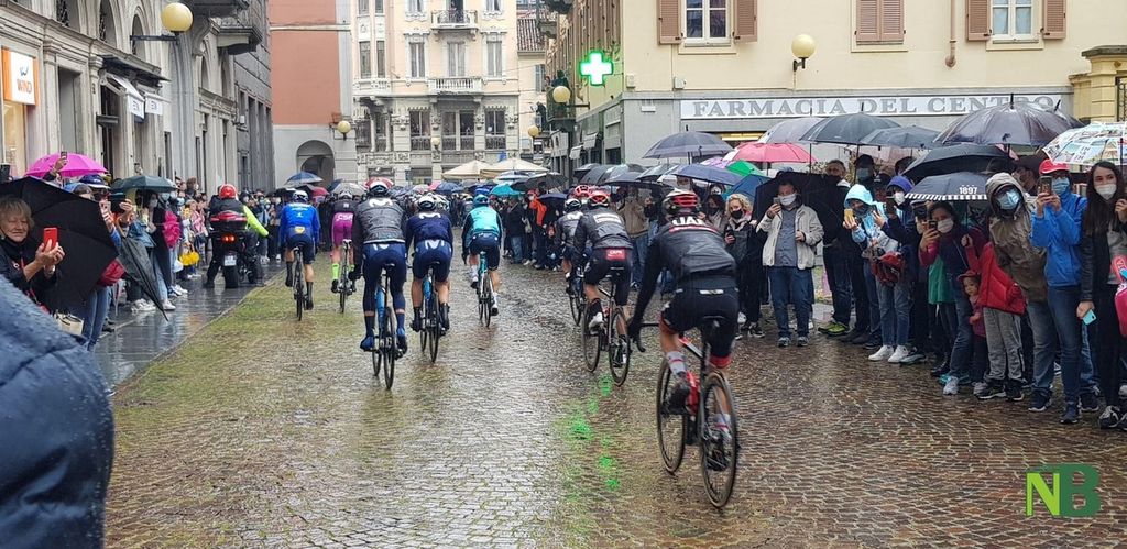 Grandi emozioni oggi per la Città di Biella. Finalmente il momento tanto atteso è arrivato: il via della terza tappa Biella-Canale è scattato alle 12,20 in punto. Inevitabile la presenza di tanti cittadini che muniti di mascherina (e ombrello) hanno riempito via Italia, anche se in altri tempi ce ne sarebbero stati molti di più.