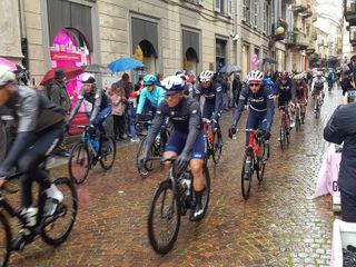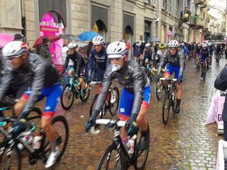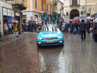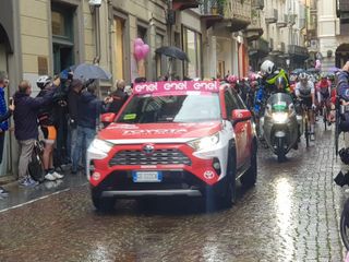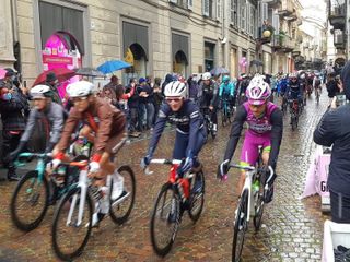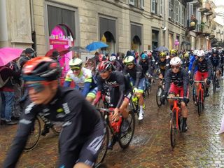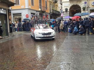 Biella si preparava da settimane a questo momento e nemmeno la pioggia ha fermato l'emozione che ogni volta la corsa rosa sa regalare. Presenti al via il sindaco di Biella Claudio Corradino e l'assessore regionale Chiara Caucino.
