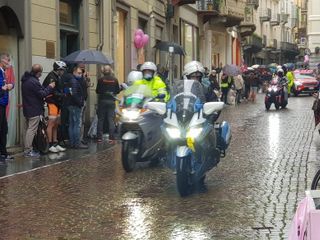Grandi emozioni oggi per la Città di Biella. Finalmente il momento tanto atteso è arrivato: il via della terza tappa Biella-Canale è scattato alle 12,20 in punto. Inevitabile la presenza di tanti cittadini che muniti di mascherina (e ombrello) hanno riempito via Italia, anche se in altri tempi ce ne sarebbero stati molti di più.