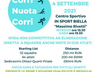Spiega Gabriele Pivano, responsabile di In Sport Piemonte: «Abbiamo pensato ad una gara che potesse essere innanzitutto divertente. E così è nata l'idea di organizzare il "Corri, nuota, corri". Si svolgerà nel lido estivo del nostro impianto sportivo e gli atleti dovranno effettuare un circuito di 250 metri di corsa, 200 di nuoto e altri 250 di corsa».