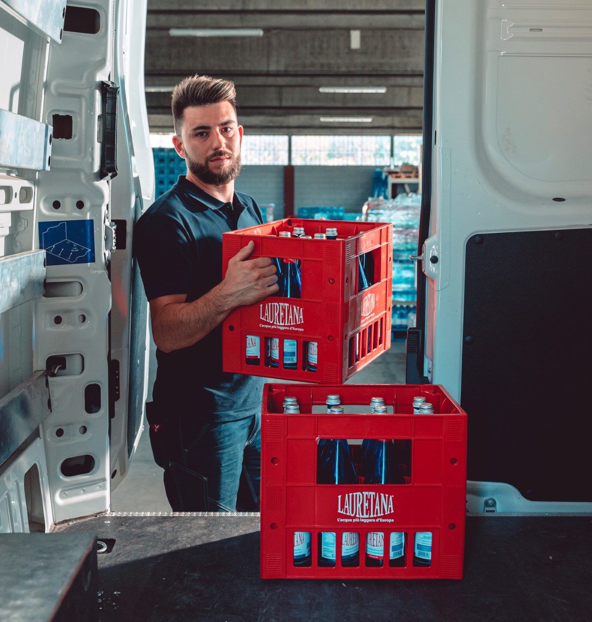 Ci sono Alessio e Davide, i due “omini” incaricati di consegnare l’acqua – rigorosamente Lauretana – a domicilio, in vetro a rendere; e Paci, l’“omina d’ufficio” che si occupa degli ordini dei clienti abituali e di spiegare come funziona il servizio a quelli nuovi.