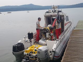 Per tutta la giornata i soccorritori, Polizia Locale, Vigili del Fuoco e sommozzatori, hanno perlustrato le rive del lago e scandagliato con un eco-sonar il fondo fino a quando è stata intercettata una sagoma anomala che potrebbe riferirsi ad un corpo. Nella giornata di domani i sommozzatori si immergeranno nel punto esatto, profondo oltre 40 metri, per verificare l'origine di quella traccia.