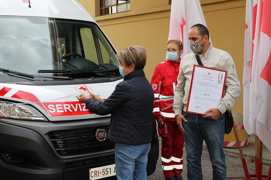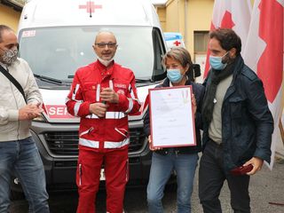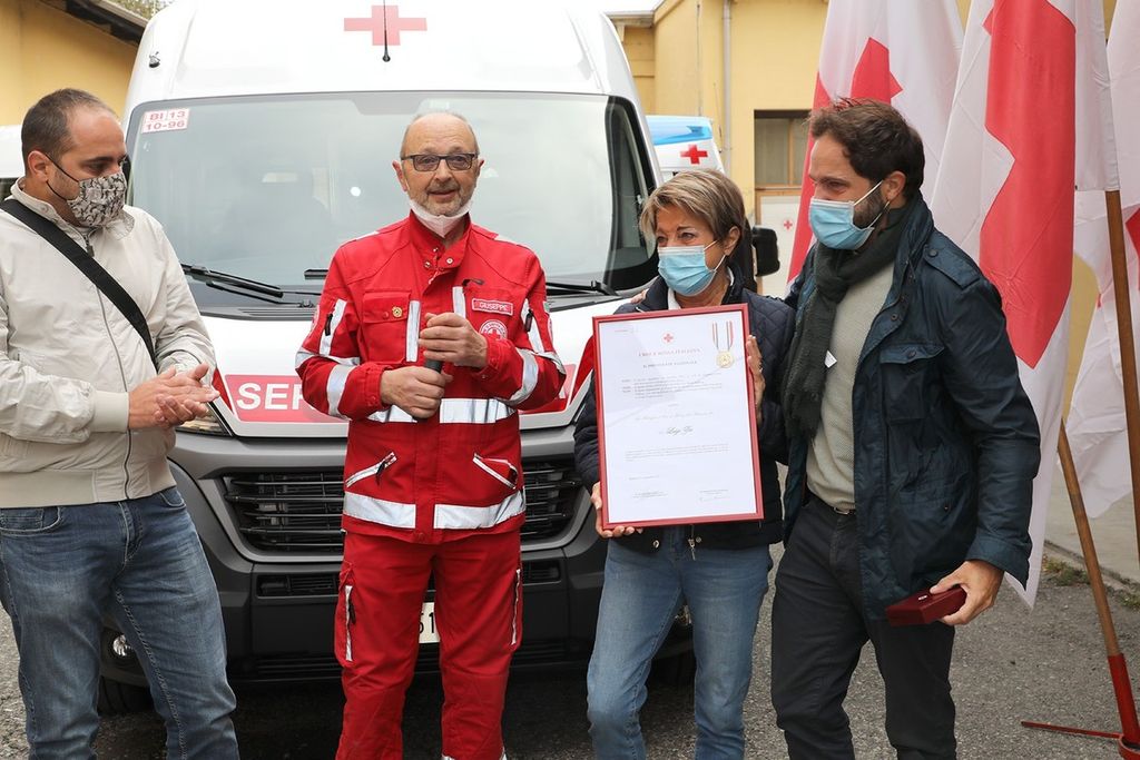 Sabato scorso, 2 ottobre, nella sede della Croce Rossa di Cossato, la famiglia del geometra e volontario ha donato un pulmino attrezzato al servizio dialisi e al trasporto dei malati e disabili: presenti la moglie Emanuela, insieme ai figli Andrea e Alessandro, che hanno ricevuto una pergamena e una medaglia d'oro al merito.