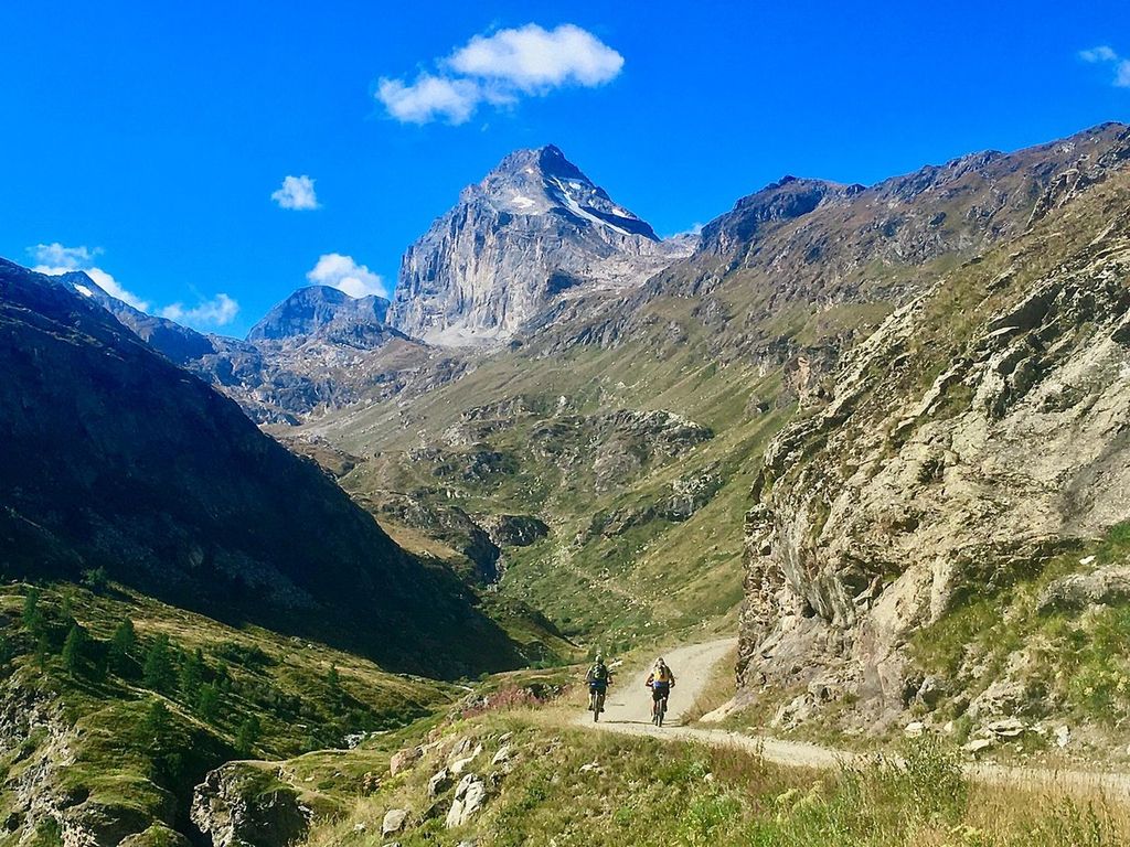 Si pedala completamente immersi nella pace e nel silenzio del paesaggio montano piacevolmente interrotto dal fischio delle marmotte sempre attente ad ogni movimento estraneo. Il rifugio è facilmente visibile grazie alla sua posizione su una panoramica balza rocciosa e agli antoni rossi che spiccano su tutto questo verde e il bianco dei ghiacciai che scendono dall’imponente Granta Parey, montagna simbolo di questa valle e che ben si distingue dalle altre per il suo caratteristico versante orientale.