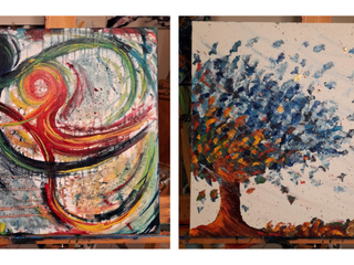 All’interno dell’accogliente Caffè degli Artisti verranno esposte le opere “Il mio albero”, “Anime danzanti”, “Autunno”, “Esplosione di Emozioni” e “Pioggia di farfalle”.