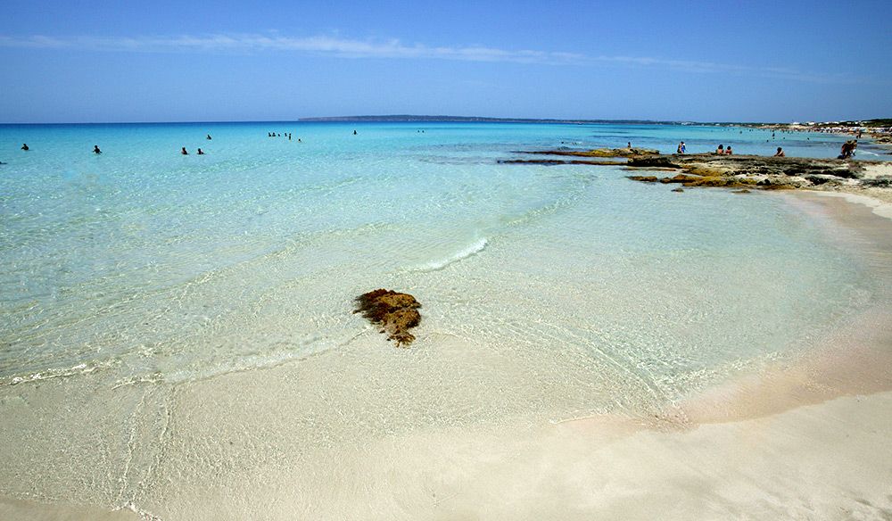 La località di Es Calò si trova nel versante opposto a quello di Migjorn. È questo l’unico punto dell’isola dove la spiaggia incontra qualche piccolo scoglio ma non per questo è penalizzata nella sua bellezza: anzi, la presenza delle rocce dona all’acqua del mare sfumature di azzurro che non ritroverete da nessun’ altra parte.
