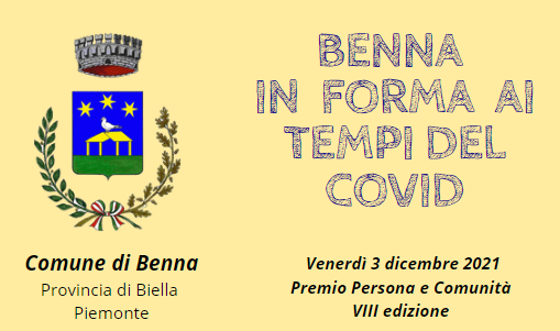 A dicembre il Comune di Benna ha partecipato alla cerimonia di premiazione dell’VIII edizione del “Premio Persona e Comunità”, riconoscimento nazionale ideato dall’Associazione Centro Studi Cultura e Società di Torino, col patrocinio di Regione Piemonte, Città Metropolitana di Torino, Città di Torino e Circoscrizione 3, per la valorizzazione dei migliori progetti finalizzati allo sviluppo, al benessere e alla cura della persona realizzati nella Pubblica Amministrazione e nel Volontariato.