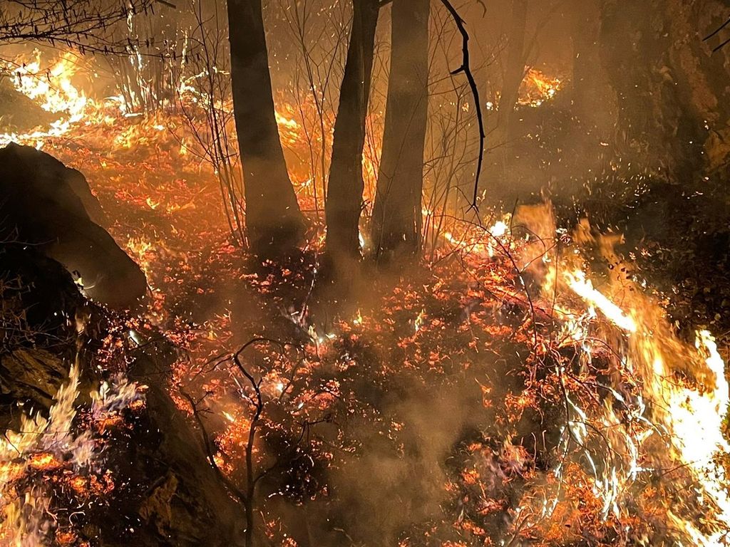 Lingue di fuoco alte diversi metri sull'Alpe Cavanna. Non accenna a diminuire l'intensità dell'incendio scoppiato nel territorio di Donato, al confine tra Biellese e Torinese: le forti raffiche di vento del pomeriggio hanno di fatto vanificato gli sforzi dei numerosi operatori di AIB e Vigili del Fuoco chiamati a domare le fiamme.