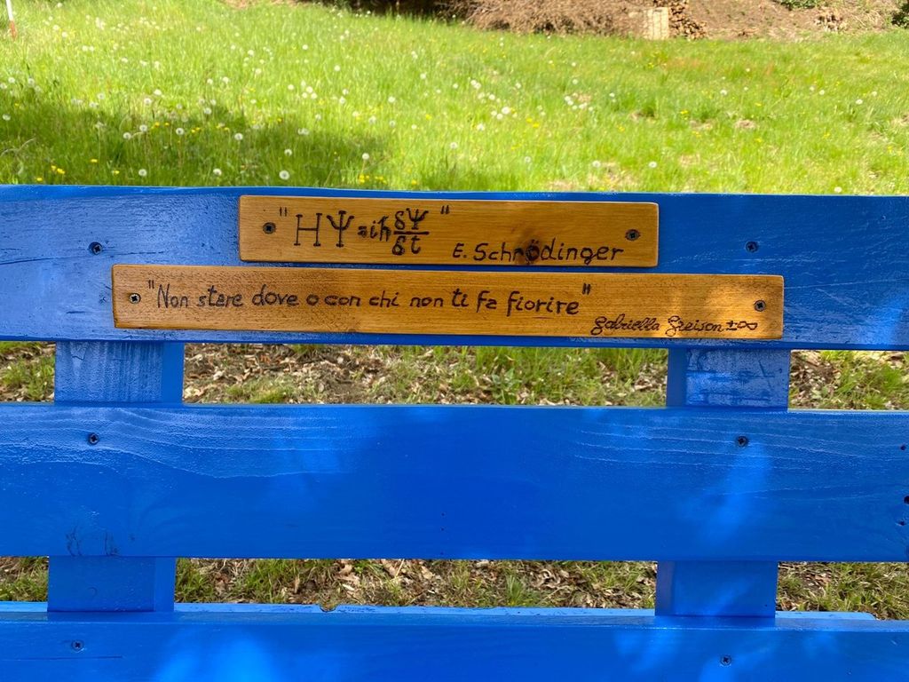 Opera dell’associazione Vermogno Vive, già promotrice del restauro del forno di via Debernardi, la piccola panchina riporta il motto della ricercatrice e scrittrice Gabriella Greison: “Non stare dove o con chi non ti fa fiorire” e lei stessa ha condiviso sul suo profilo Facebook l’iniziativa: “Hanno creato una panchina-installazione nei pressi di Biella su cui è stato inciso il mio motto. Ne vado molto fiera!”.