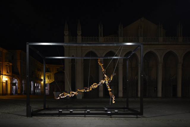 Questa sera, venerdì 27 maggio, alle 20, all'ingresso dell’anfiteatro di Sordevolo, in provincia di Biella, sarà presentata, sospesa a 9 metri di altezza, MMXXII (2022 in numeri romani), l'opera che l'artista biellese Paolo Barichello ha dedicato alla Passione.