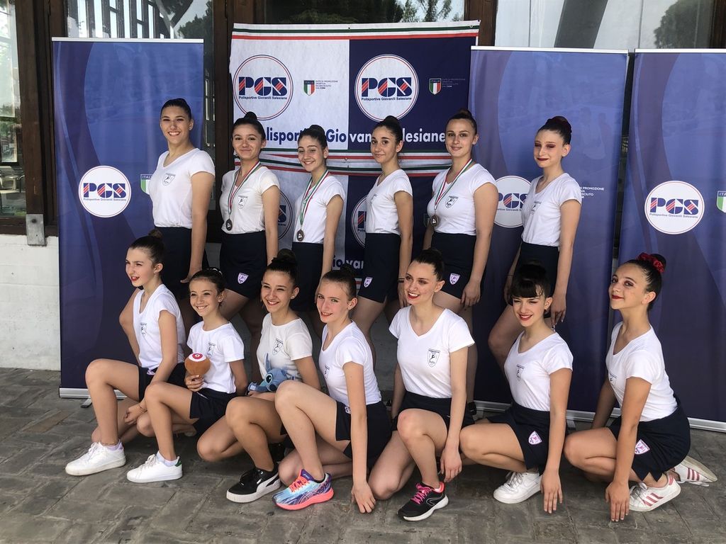 Bellissima performance per Giulia Gallo negli individuali, programma C: argento sia alla fune che al corpo libero, nonostante errori compromettenti. Falcetti Giorgia al nastro sale sul podio e porta casa un bel secondo posto. Rebecca Pulze sfiora il podio nei programmi B e si classifica 4° con un nuovo e difficile esercizio con le clavette. Gli allenamenti delle ragazze di Donatella Eterno, allenate da Francesca Boggio e Giada Pomini proseguono in vista dei nazionali PGS per il settore promozionale di sabato 11 giugno ad Asti e per il Festival del Sole a Riccione i primi di luglio, manifestazione internazionale.